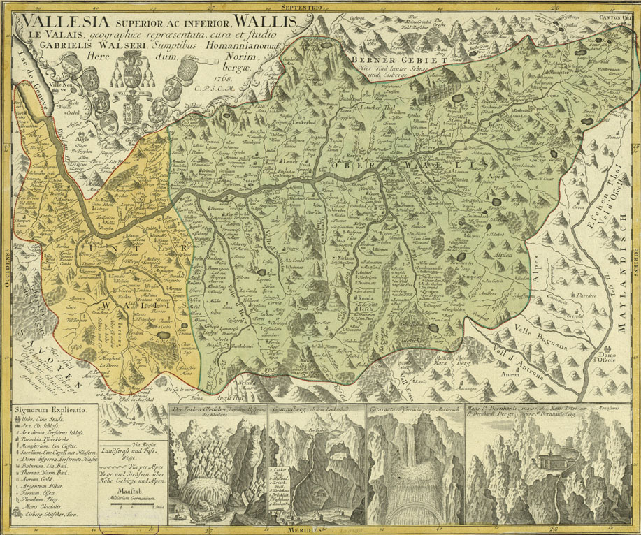 Map of Valais by Gabriel Walser. Zentralbibliothek Zürich, Kartensammlung