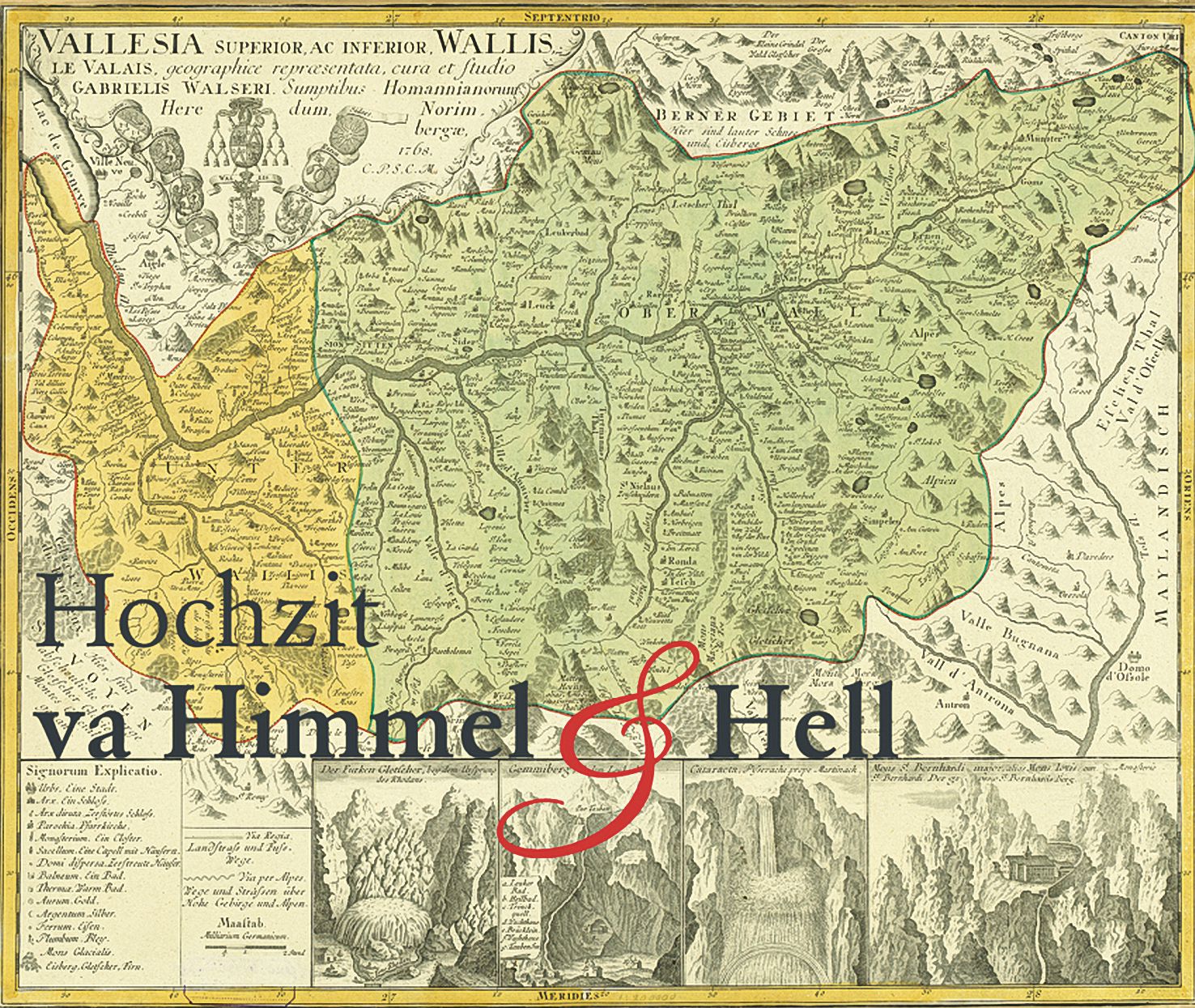 |  | Bild 1: Alte Walliserkarte mit Schriftzug "Hochzit va Himmel und Hell". © Kartensammlung Zentralbibliothek, Zürich